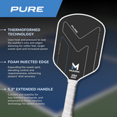 Thermoformed: An intricate manufacturing process that uses heat and pressure to seal the paddle’s core and edges allowing for softer feel, larger sweet spot and increased power.