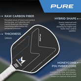 Raw Carbon Fiber (Toray T700): Using 3 layers of T700 (Toray) Raw Carbon Fiber, it gives a player an elevated sense of touch and control during play. It absorbs and evenly disperses the energy minimizing deformation and more resistant to fatigue and wear than fiberglass or graphite.